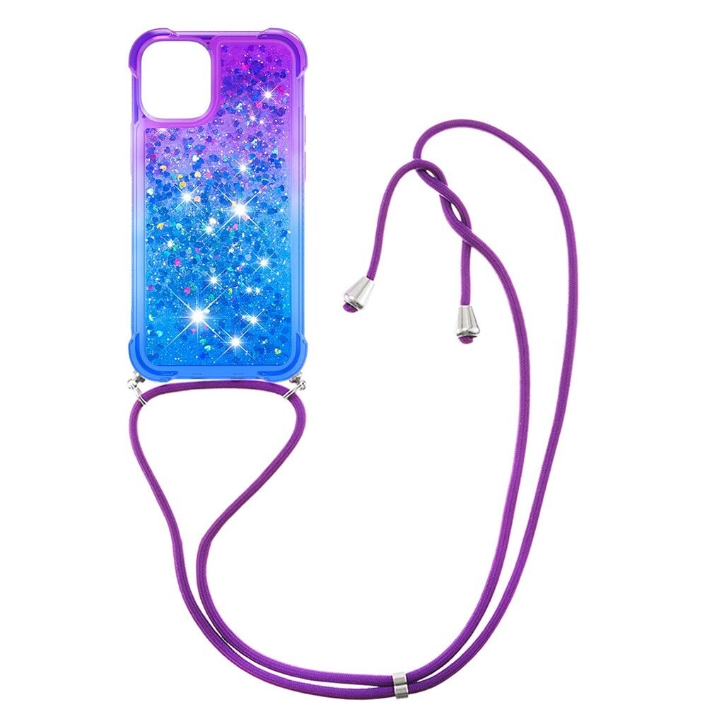 Funda Quicksand Bling Sparkle para iPhone 13 (6.1”) – TPU Suave con Purpurina Líquida – Gradiente Púrpura / Azul